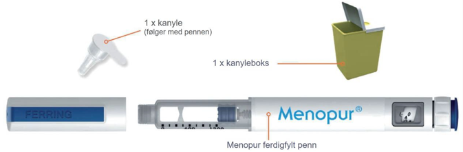 Kontakt helsepersonell dersom du trenger flere kanyler. Du må kun bruke kanyler som følger med i pakningen med Menopur ferdigfylt penn, eller som du har fått forskrevet av helsepersonell.