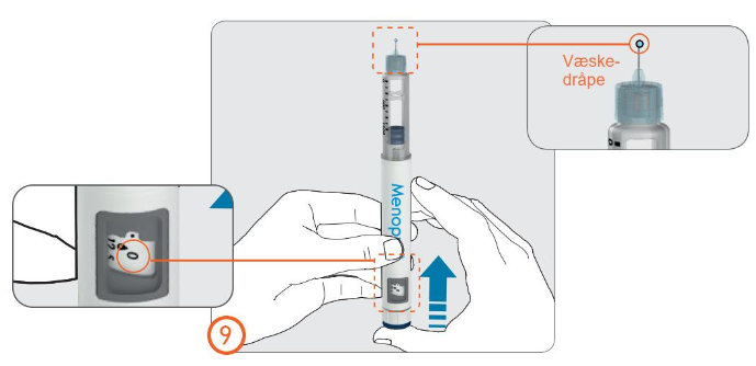Dersom det ikke kommer noen væskedråpe(r), må steg 7-9 (klargjøring) gjentas inntil det kommer en dråpe.