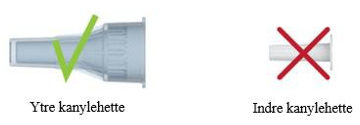 Ikke kast den ytre kanylehetten, ettersom du trenger den når du skal kaste kanylen etter at du har injisert legemidlet.