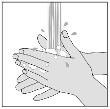 middel til rensing av huden, for eksempel desinfeksjon med alkohol, eventuelt såpe og vann