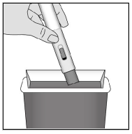 Hver penn kan bare brukes én gang. Ikke sett hetten tilbake på pennen. Den brukte pennen og beskyttelseshetten må oppbevares utilgjengelig for barn.