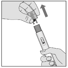 5. Ta av hetten (figur G) Ikke ta av beskyttelseshetten før du er klar til å sette injeksjonen. Ikke prøv å sette hetten på pennen igjen etter at den har blitt fjernet.