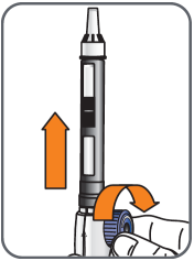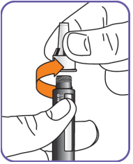 8. Med den ytre kanylehetten pekende oppover, skru sylinderampullen på pennen i retning med klokka til det ikke er noe mellomrom igjen mellom sylinderampullen og pennen.