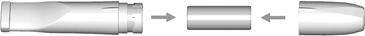 4. Når munnstykkets to deler settes sammen med markeringene rett ovenfor hverandre (se bilde), brytes forseglingene på hver side av dosebeholderen.