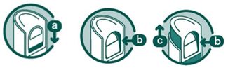 1. Bruk tommelen til å føre ned knappen (a) til den kommer i en posisjon der du kan trykke den lett innover (b). Trykk ikke for hardt.