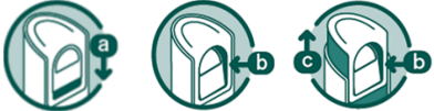 1. Bruk tommelen til å føre ned knappen (a) til den kommer i en posisjon der du kan trykke den lett innover (b). Trykk ikke for hardt.