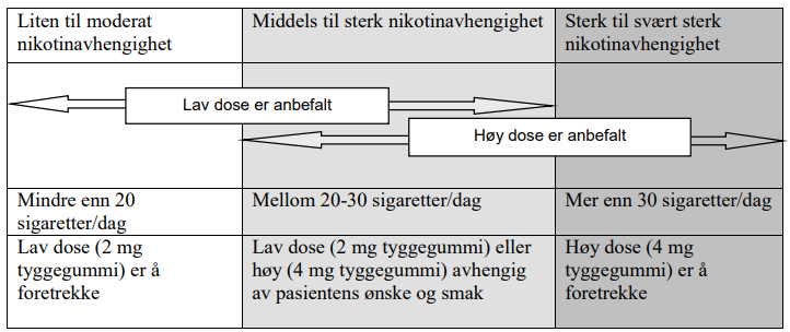 Styrken velges ut fra hvor nikotinavhengig du er. Du bør bruke 4 mg Nicotinell medisinsk tyggegummi, Icemint dersom: