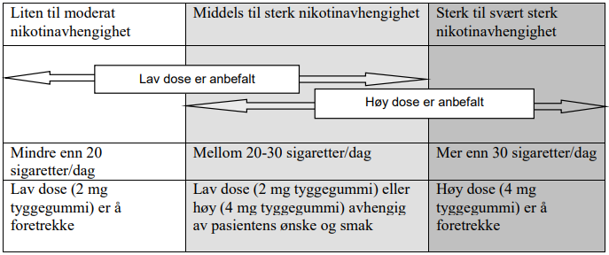 Behandlingen bør avsluttes når dosen er redusert til 1-2 tyggegummier per dag.