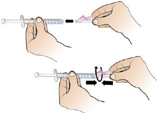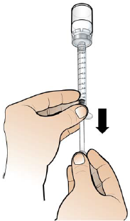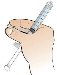 Skyv stempelet sakte tilbake slik at sprøyten kun inneholder den mengden legen har forskrevet.