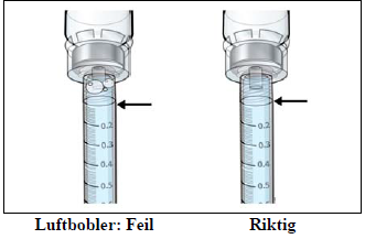 Pass på at alle luftbobler er fjernet fra sprøyten.