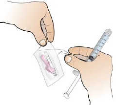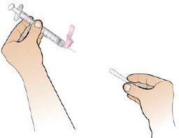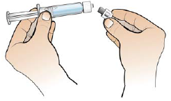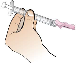 Hold den fylte sprøyten i hånden, og ikke berør sprøytespissen.