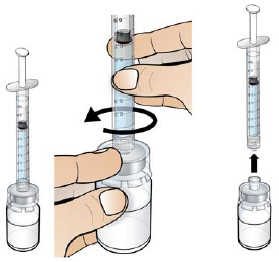 Når alle luftbobler er fjernet og sprøyten er fylt med riktig dose, vrir du sprøyten av hetteglassadapteren.