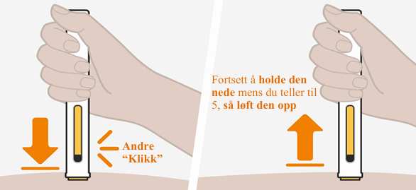 Ikke løft pennen før du er sikker på at du har fullført injeksjonen.
