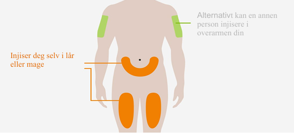 Skal ikke injiseres der huden din er skadet, sår, rød eller hard. Skal ikke injiseres innenfor 5 cm fra navlen din. |