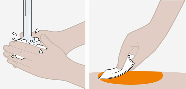 Ikke ta på injeksjonsstedet igjen før du er ferdig med injeksjonen.