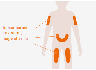Skal ikke injiseres der huden er skadet, sår, rød eller hard. Skal ikke injiseres innenfor 5 cm fra navlen. |
