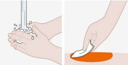 Ikke ta på injeksjonsstedet igjen før etter du er ferdig med injeksjonen.