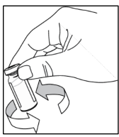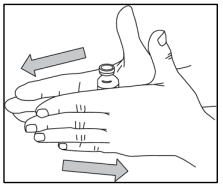 Trinn 10: Avhending Etter injeksjonen skal all ubrukt NULIBRY-oppløsning, sprøyten med injeksjonssettet, hetteglasset og annet avfallsmateriale kastes på en sikker måte, som instruert av apoteket. Ikke kast det sammen med husholdningsavfall. Disse tiltakene bidrar til å beskytte miljøet. |