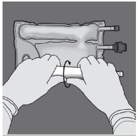 Før Numeta G13E brukes vil posen bli tilberedt som vist nedenfor.
