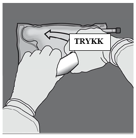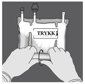 Aktivering av tokammerposen (blande to oppløsninger ved å bryte den ikke-permanente forseglingen mellom aminosyrekammeret og glukosekammeret)