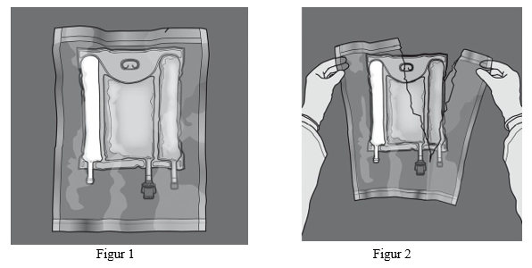 Kontroller at posen ikke er skadet. Bruk posen bare hvis den er uskadet. Slik ser en uskadet pose ut: