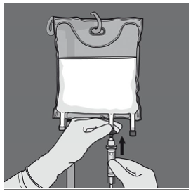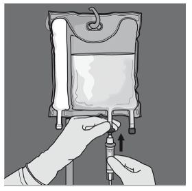 Trinn 5: Fjern beskyttelseshetten fra administrasjonsporten og sett inn administrasjonssettet for intravenøs bruk.