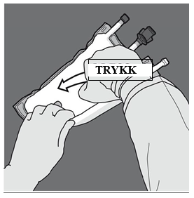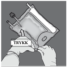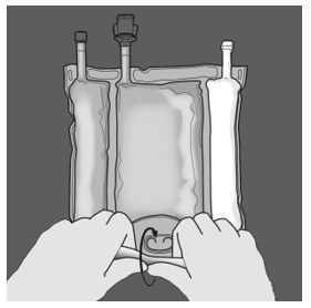 Aktivering av trekammerposen (blande tre oppløsninger ved å bryte to ikke-permanente forseglinger)