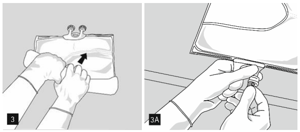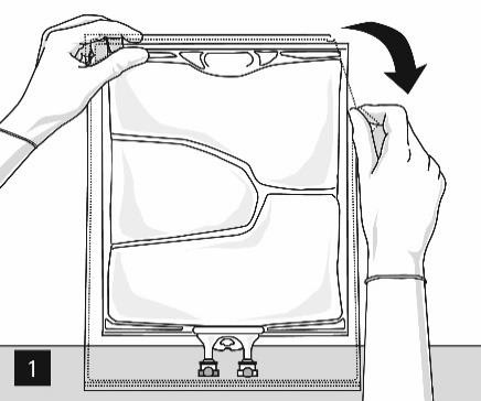 Åpning: Riv opp ytterposen ved å dra i rivekantene (figur 1). Ta posen ut av den beskyttende ytterposen. Kast ytterpose, oksygenindikator og oksygenabsorbent.
