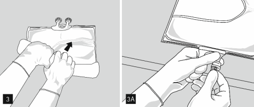 Inspiser den indre posen visuelt for lekkasjer. Poser som lekker skal kastes, da sterilitet ikke kan garanteres.