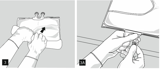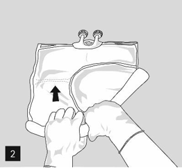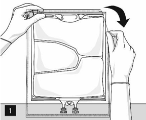Åpning: Riv opp ytterposen ved å dra i rivekantene (figur 1). Ta posen ut av den beskyttende ytterposen. Kast ytterpose, oksygenindikator og oksygenabsorbent.