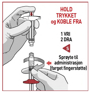 Når alt legemidlet er overført, vri de to sprøytene fra hverandre.