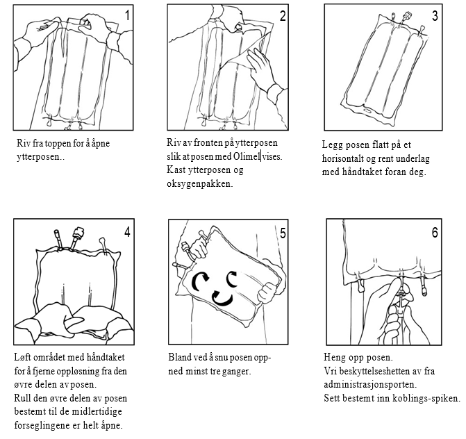 Figur 1: Trinnene i tilberedelsen for administrasjon av Olimel N5E
