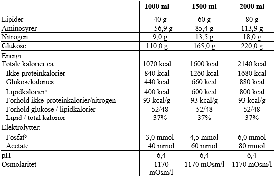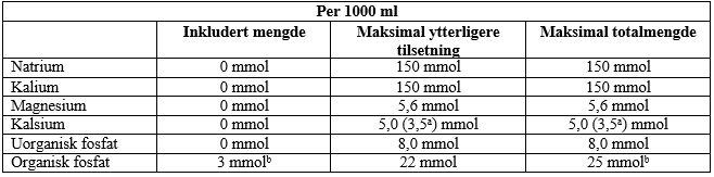 b Inkluderer fosfat tilført av lipidemulsjonen.