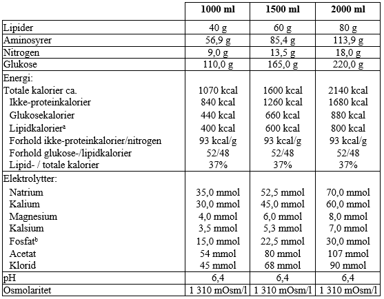 b Inkluderer fosfat tilført av lipidemulsjonen.