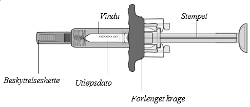 Den ferdigfylte sprøyten har en forlenget krage som gjør det enklere å holde og injisere, samt en nålebeskytter som automatisk dekker til nålen etter fullført injeksjon.