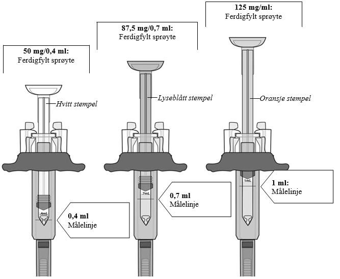 Merk: figuren viser den ferdigfylte sprøyten på 50 mg.