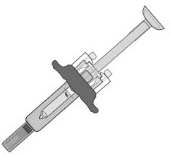 Hold den ferdigfylte sprøyten i sprøytekroppen med den tildekkede nålen pekende nedover som vist.