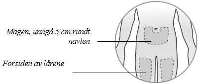 Du kan bruke samme kroppsområde ukentlig, men bruk forskjellige injeksjonsteder innen dette området.