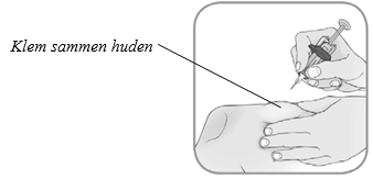 Hold sprøytekroppen til den ferdigfylte sprøyten med én hånd mellom tommel og pekefinger. Bruk den andre hånden til å klemme den rensede huden sammen.