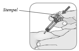 Injiser: trykk stempelet ned med tommelen så langt det går.