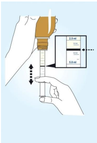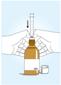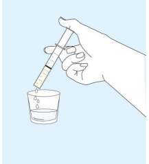 5 ml oralsprøyte (polyetylen, polypropylen) og adapter (polyetylen). Glassflaske, 250 ml.