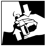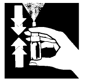 3. Før første gangs bruk, trykk 4 ganger for å klargjøre pumpen. Pumpen er deretter klar til bruk i behandlingsperioden. Hvis pumpen ikke avgir spray når du trykker på den, eller hvis den ikke har vært brukt i mer enn 7 dager, skal den igjen klargjøres med 4 trykk som beskrevet. Vær veldig forsiktig så du ikke får spray i øyne eller munn.