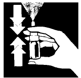 4. Før første gangs bruk, trykk 4 ganger for å klargjøre pumpen. Pumpen er deretter klar til bruk i behandlingsperioden. Hvis pumpen ikke avgir spray når du trykker på den, eller hvis den ikke har vært brukt i mer enn 7 dager, skal den igjen klargjøres med 4 trykk som beskrevet. Vær veldig forsiktig så du ikke får spray i øyne eller munn.