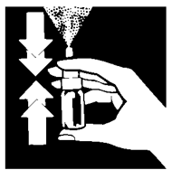 2. Pumpen skal klargjøres før første gangs bruk ved å trykke den ned 4 ganger. Etter klargjøring vil pumpen normalt forbli slik gjennom regelmessige daglige behandlingsperioder. Om sprayen ikke kommer når man trykker pumpen helt ned, eller den ikke har vært i bruk i mer enn 6 dager, trenger pumpen å bli klargjort på nytt med 4 trykk som ved første gangs bruk. Vær veldig forsiktig med å ikke spraye i øynene eller munn.
