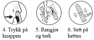 4. Trykk på knappen for å spraye og pust samtidig rolig inn gjennom nesen. Gjenta denne prosedyren (trinn 2 til 4) i det andre neseboret.
