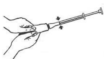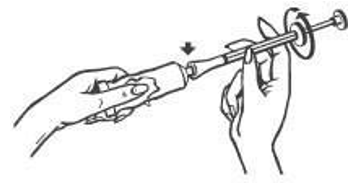 8. Applikatoren kan settes sammen igjen ved å skyve stempelet fullstendig inn i sylinderen forbi det punktet der man merker motstand.
