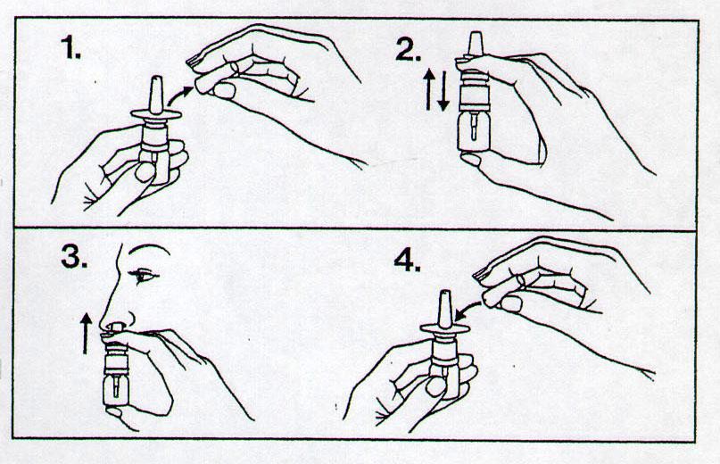 Hodet skal ikke være tilbakebøyd under sprayingen. Du bør sitte og puste forsiktig gjennom nesen. -
