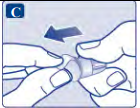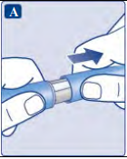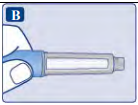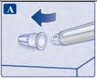 Nålen er dekket av to hetter. Du må fjerne begge hettene. Dersom du glemmer å fjerne begge hettene, vil du ikke få injisert noe oppløsning.