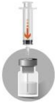 Tilstedeværelse av bobler på toppen av det frysetørrede pulveret er vanlig for dette legemidlet. Følgende trinn må utføres i angitt rekkefølge. |