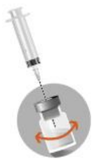 Tilstedeværelse av bobler på toppen av det frysetørrede pulveret er vanlig for dette legemidlet. Følgende trinn må utføres i angitt rekkefølge. |